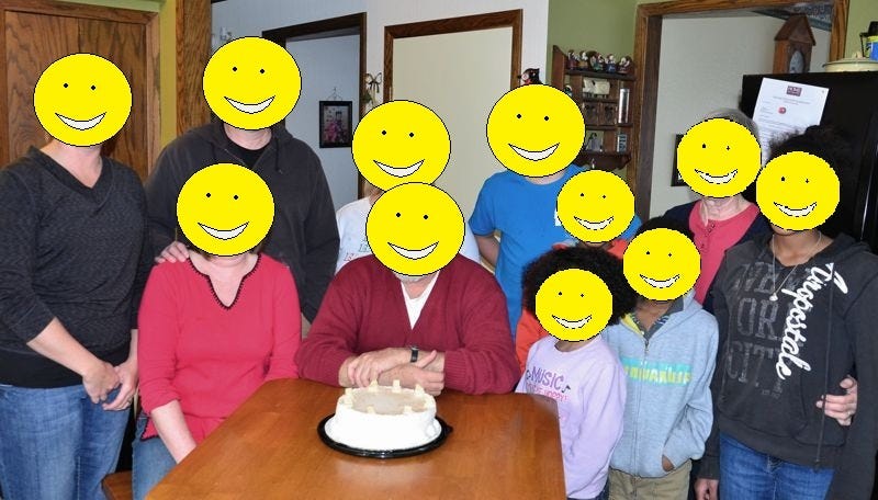 Well, it’s ridiculous. My family gave the client permission to share it without the smiley faces because that would just seem weird and awkward.